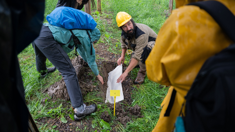 Il peut par ailleurs se détériorer rapidement. Il paraît solide, on le pense immuable, mais rien n’est moins vrai. Même lorsqu’on cherche à améliorer sa qualité, il faut être très précautionneux, car chaque intervention sur un sol entraîne une détérioration. C’est un processus délicat qui ne fonctionne pas toujours, on est dans l’expérimentation. Le sol, c’est l’intersection entre la physique, la biologie et la chimie. C’est un monde complexe duquel on ne sait de loin pas tout. C’est d’autant plus important de le protéger, car c’est là que se trouvent tous les nutriments des végétaux, qui en se développant forment la base de l’alimentation de tous les mammifères. Le sol est vraiment le lieu de la création de la vie.