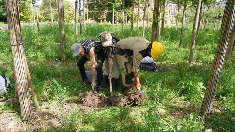 Souvent, on ne se rend pas compte qu’il y a une diversité de sols, même sur de petites surfaces. En ville, comme à Rigot, cette diversité est encore plus marquée, car l’homme a eu un impact très fort sur les sols. Il y a eu de nombreuses interventions – des zones ont été complètement renaturées, d’autres décapées ou ajoutées artificiellement – et cela a conduit à une juxtaposition de sols très différents. Le défi est d’identifier les zones qui fonctionnent vraiment et de les protéger.